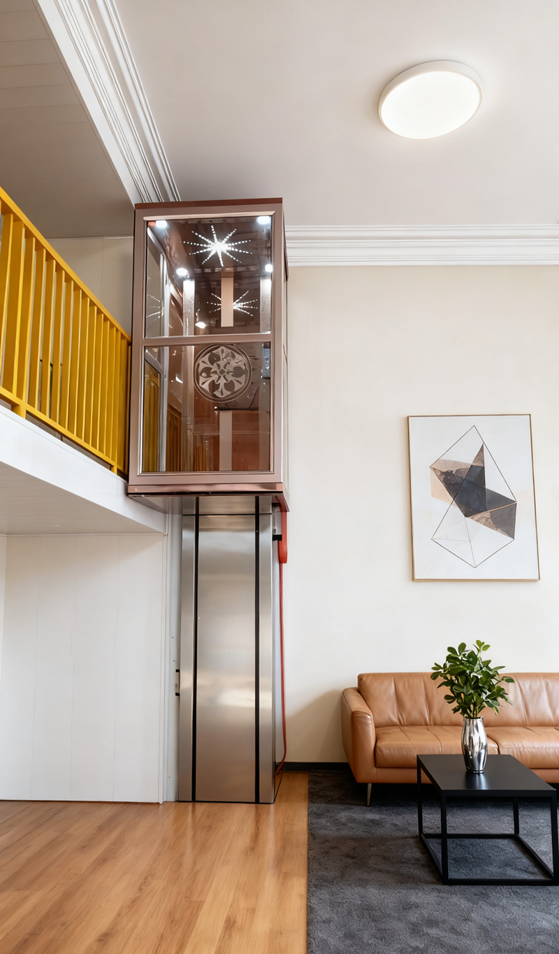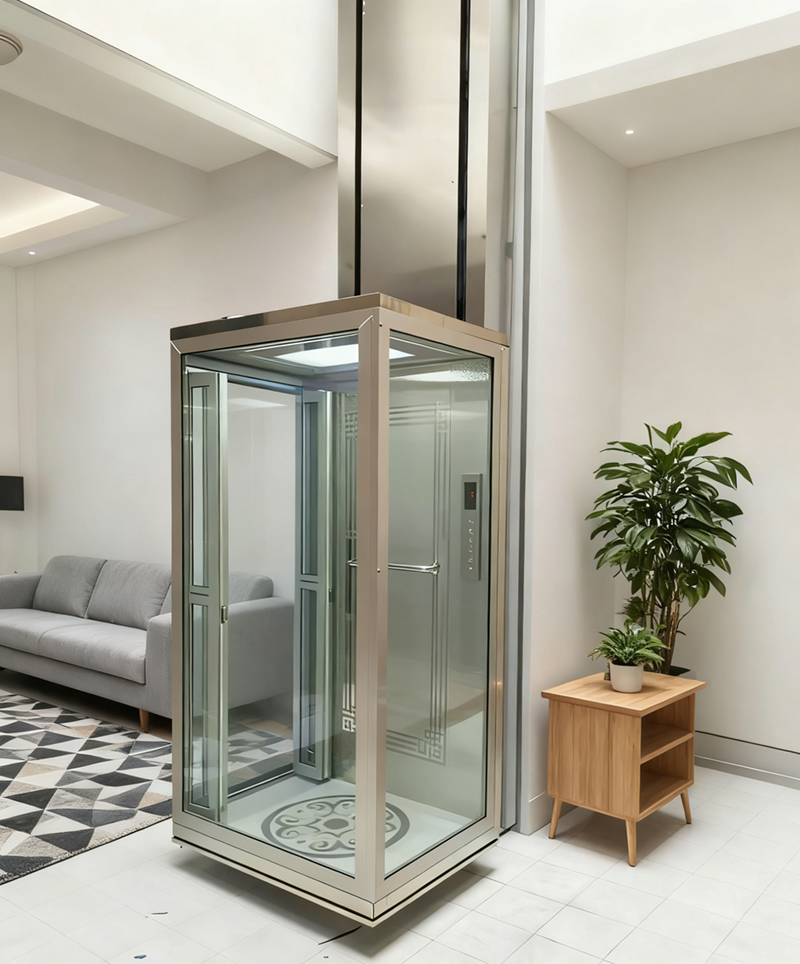 The cabin of elevator combines a robust aluminum alloy frame with premium tempered glass—a perfect blend of safety, style,